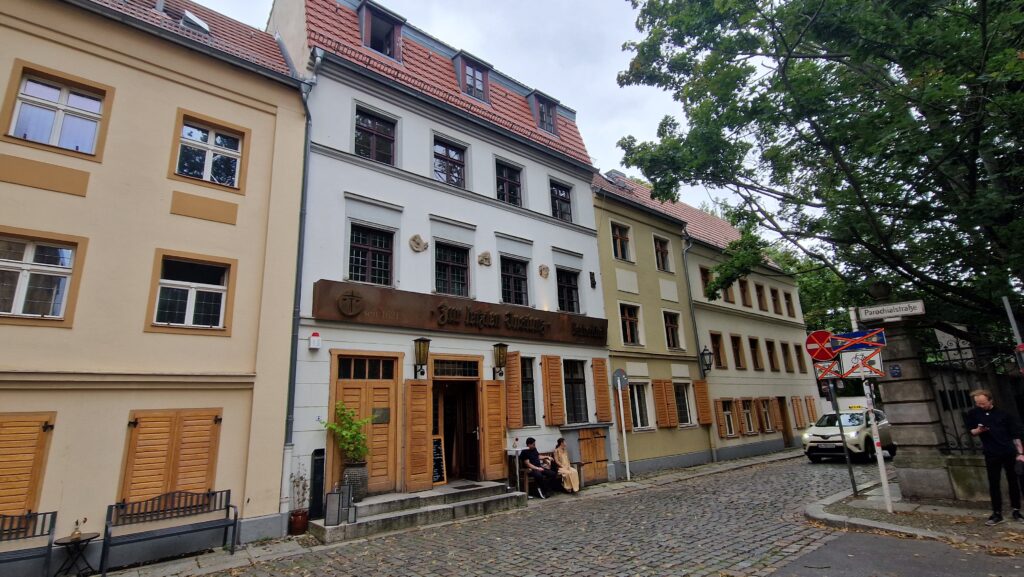 Wir sind mitten im Gerichtsviertel der alten historischen Mitte Berlins, daher rührt auch der Name dieses besonderen Restaurants: Zur letzten Instanz. Der Legende nach geht der Name auf einen Rechtsstreit zweier Bauern zurück, der Streit fand dann – wahrscheinlich bei einem guten Berliner Bier – hier im Lokal sein friedliches Ende. Auf jeden Fall ist das Restaurant heute eine Instanz in Berliner Küche und das wohl ältestes Lokal Berlins, Gastronomie an diesem Ort gibt es seit 1621. Im Zweiten Weltkrieg wurde es schwer beschädigt erst 1963 nach einer aufwendigen Rekonstruktion wiedereröffnet.