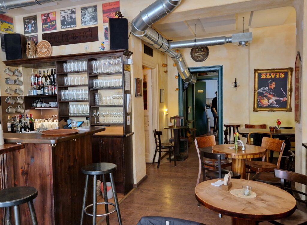 Diese Kiezkneipe ist ein bisschen anders, als man es sonst von verrauchten Kneipen in Berlin kennt und es erwarten würde. Im Goldesel in Charlottenburg (übrigens fußläufig zum Schloss) erwartet dich eine Wohnzimmer-Atmosphäre. Auf der Karte stehen nicht nur ausgewählte Biere, gute Weine aus der Pfalz und Longdrinks, dazu bekommst du auch Kleinigkeiten zu essen: Einfach mal eine Stulle oder vegane Eintöpfe und andere kleine Gerichte in Bioqualität – alles frisch zubereitet und bei Bedarf auch vegan.