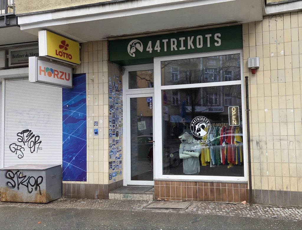 Wow, dieser kleine Laden hat es in sich: Bei 44Trikots bekommst du garantiert das, was du suchst vom Verein deiner Wahl – egal ob Bundesliga oder international. 44Trikots steht übrigens für den PSN-Namen des jungen Gründers des Trikot-Ladens: Ziad Gornasa ist in Libyen geboren und kam als Kind nach Berlin. Er ist absoluter Fan, denn der Fußball hat ihm geholfen, hier in Deutschland so richtig anzukommen. Mit 21 Jahren hat er sich dann selbstständig gemacht und als Trikotsammler seinen eigenen Laden eröffnet.