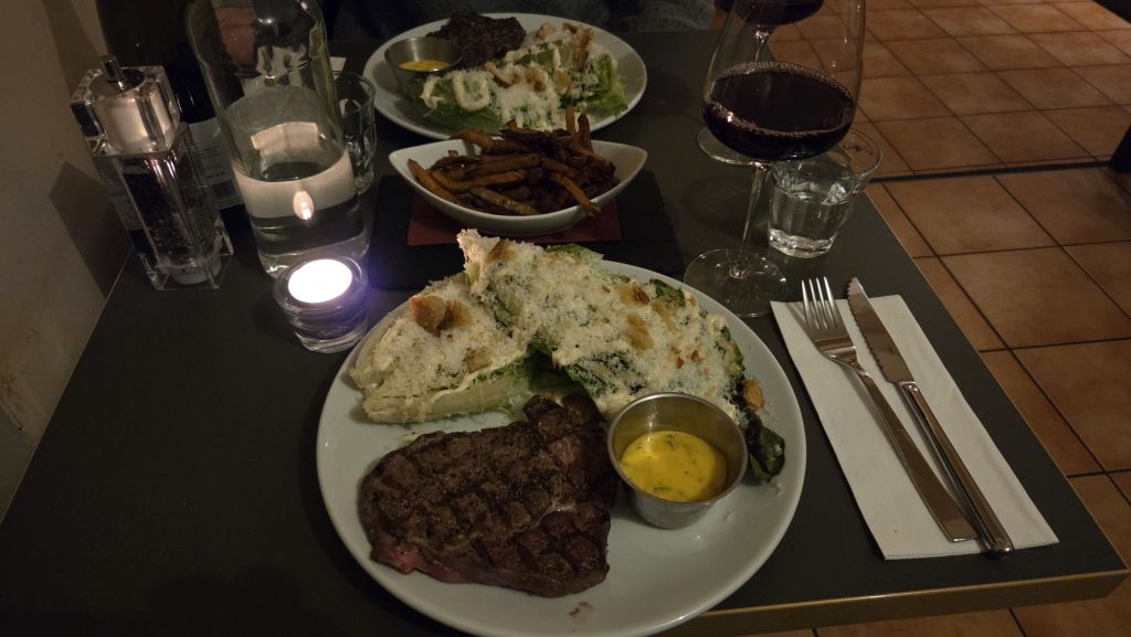 Du bekommst sorgfältig ausgewählte Steaks auf den Punkt gegart, das kann ich positivbestätigen. Aber auch Garnelen oder Fisch sind möglich und auch vegetarische Optionen kannst du bekommen, dazu gute französische Wein. Ich kann dir dieses Steakhouse empfehlen, auch wenn mein Steak mich etwas enttäuscht hat.