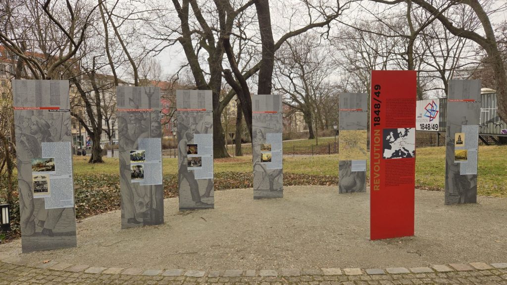 Auf dem Friedhof informiert außerdem eine Dauerausstellung „Am Grundstein der Demokratie“ über die beiden Revolutionen im März1848 und November 1918, sowie über die bewegende Geschichte des Friedhofes. Dieser wurde im Lauf der Zeit aufgeschüttet, die meisten Gräber entstanden und es entstand ein Gedenkort für Freiheit und Demokratie. Zum 100. Jahrestag des Friedhofs 1948 wurde ein Gedenkstein für die Revolutionsopfer 1848/1918 eingeweiht. Die Inschrift würdigt die Opfer mit den Worten „Das Denkmal habt ihr selber Euch errichtet“.